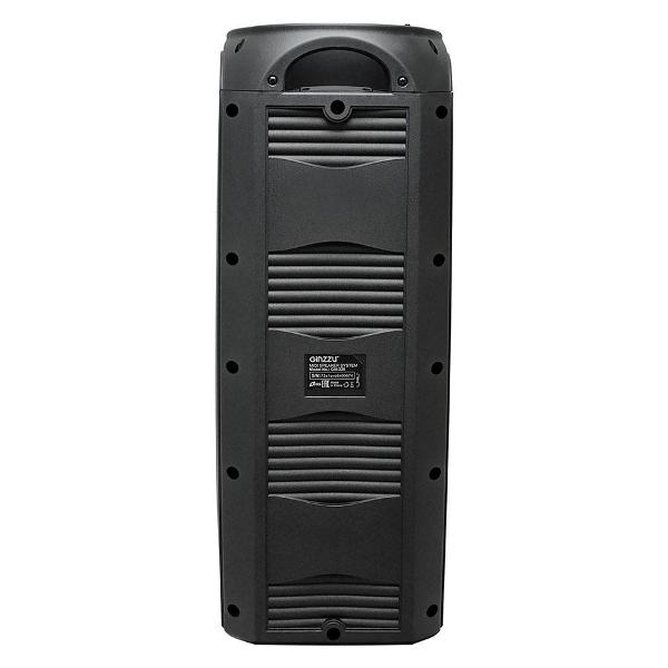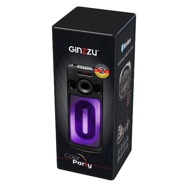 Беспроводная акустика Ginzzu GM-228 — модель в корпусе из металла и пластика, снабженная ручкой для переноски. Встроенная подсветка придает привлекательный внешний вид. Встроенный пятиполосный графический эквалайзер позволяет настраивать звук. Суммарная мощность системы составляет 80 Вт. Частотный диапазон варьируется от 45 Гц до 20000 Гц. Отношение сигнал/шум — 65 дБ.