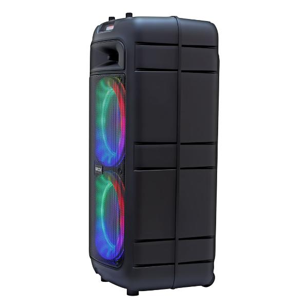 Модель поддерживает подключение устройств через Bluetooth, оснащена микрофонным входом, USB-портом, разъемом 3,5 мм. Частотный диапазон — от 45 Гц до 20 кГц, емкость установленного аккумулятора — 4500 мА*ч. Колонка оснащена радио-тюнером (от 87,5 МГц до 108 МГц). В комплект поставки включен пульт дистанционного управления.