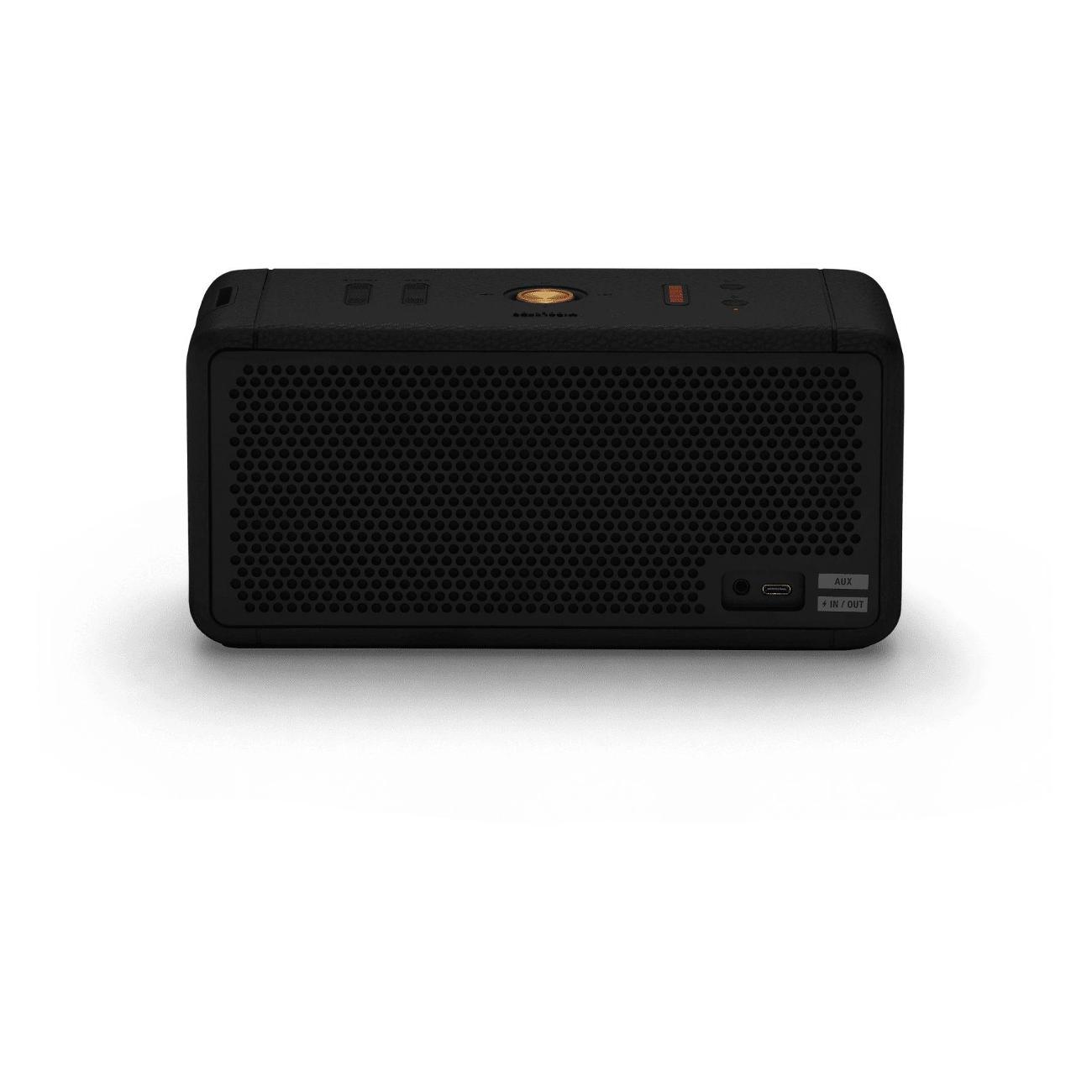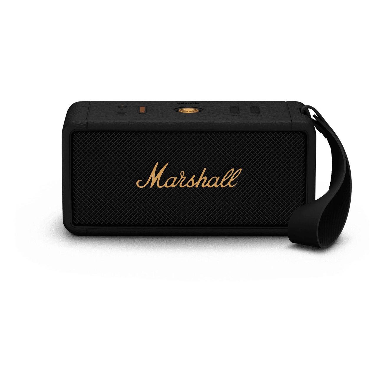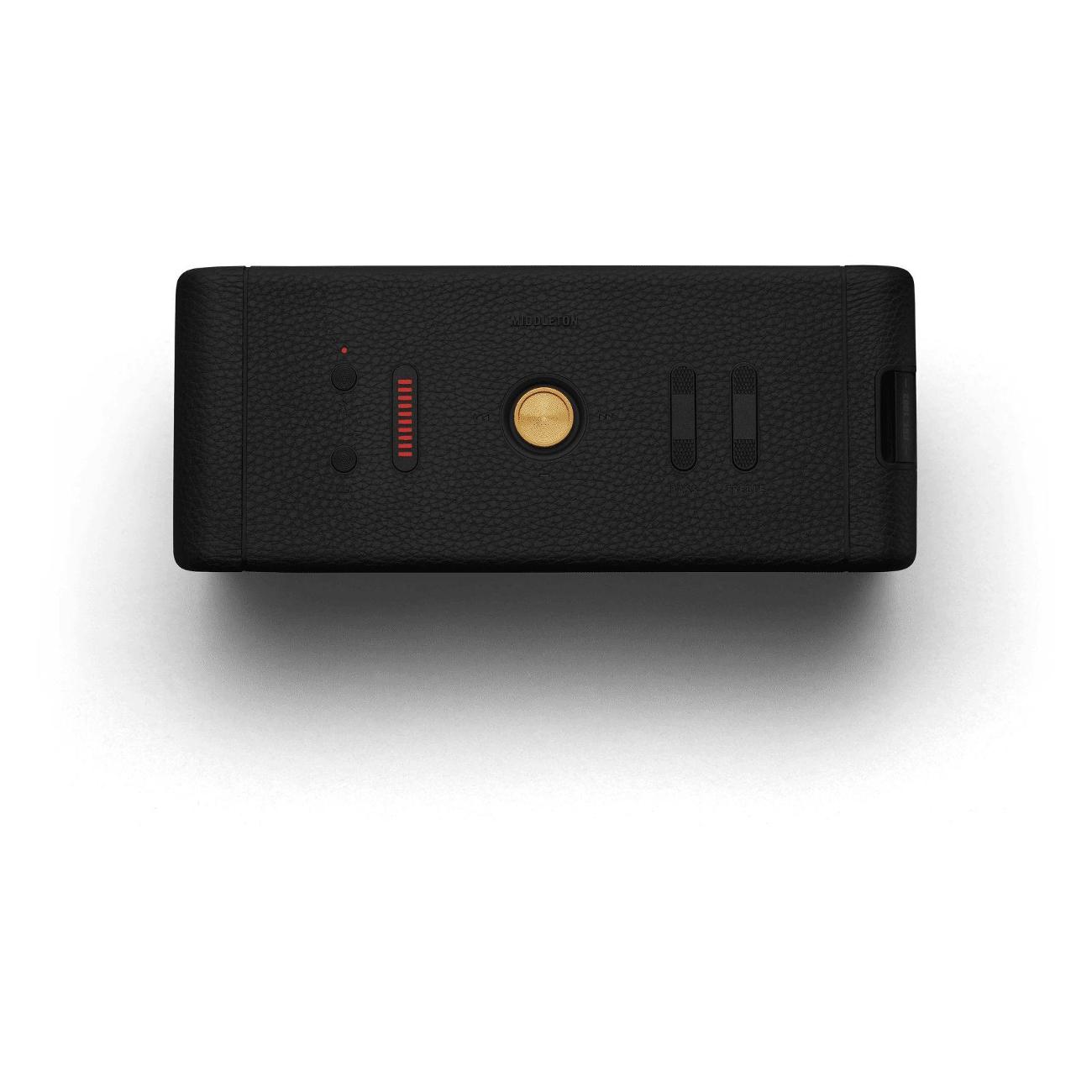 Беспроводная акустика Marshall Middleton Black подходит для использования как в помещении, так и на улице. Устройство способно функционировать в автономном режиме в течение 20 часов без необходимости подзаряда. Благодаря высокой прочности конструкции колонка не боится падений и ударов. Материал исполнения корпуса содержит в себе 55% экологичного переработанного пластика. Несколько колонок Marshall можно подключить друг к другу для еще большего погружения в музыку. На полную зарядку модели уходит примерно 4,5 часа.