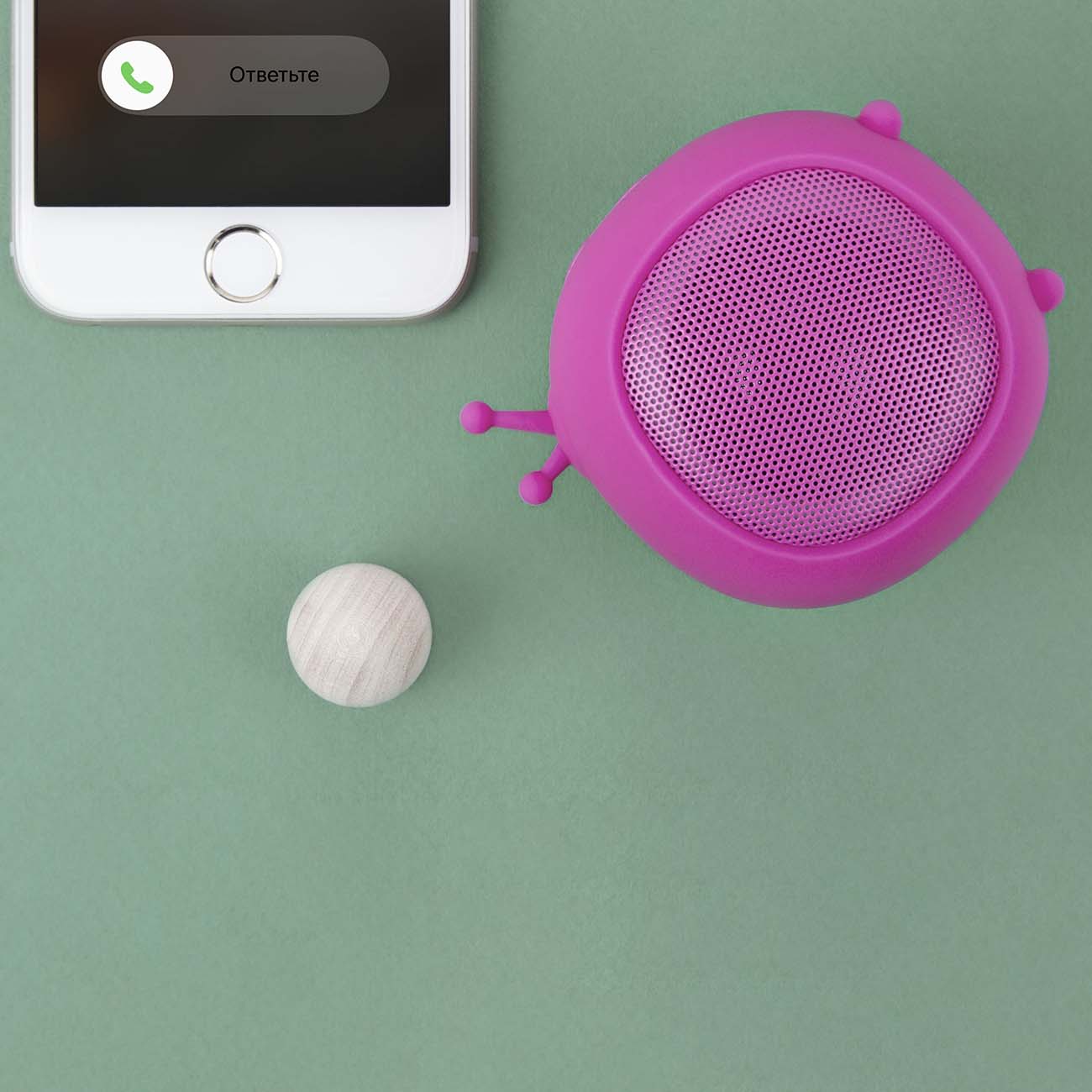 Rombica Mysound Telly – миниатюрная портативная беспроводная колонка, которая станет вашим верным спутником на прогулке, в поездке и любом другом месте. Её размеры составляют всего 7,2 х 6,4 х 4,9 см, а вес – 91 г, так что вы сможете положить акустику в рюкзак или даже в карман одежды. Корпус, выполненный из силикона, устойчив к механическим воздействиям и не утратит первоначальный вид весь срок службы.