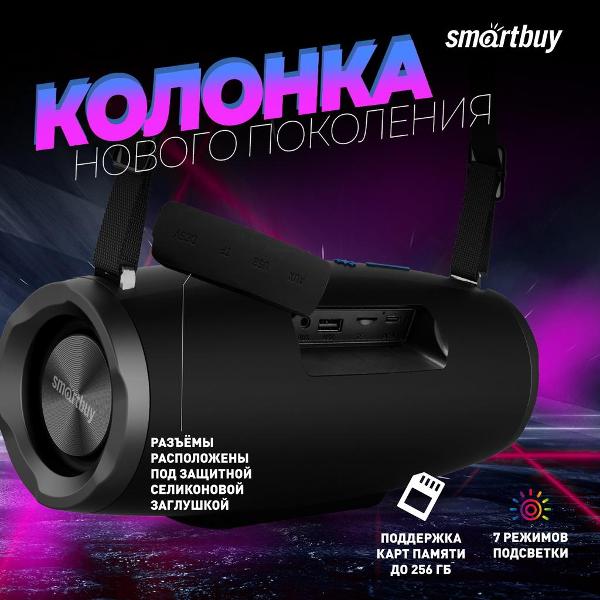 Беспроводная акустика Smartbuy Boom JR построена на архитектуре 2.0 суммарной выходной мощностью 32 Вт. Диаметр динамиков составляет 165 мм, они воспроизводят звук в частотном диапазоне от 60 Гц до 15 кГц. Установлена RGB-подсветка (семь режимов), она эффектно выглядит и поможет создать зажигательную атмосферу для веселой вечеринки в любом месте.