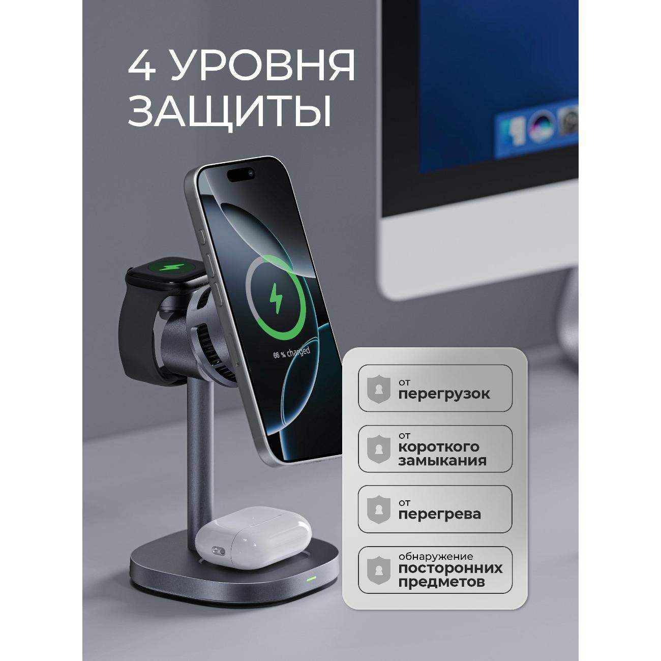 Беспроводное зарядное устройство Deppa QI2 23169 3 в 1 совместимо с мобильной электроникой производства Apple и Samsung.