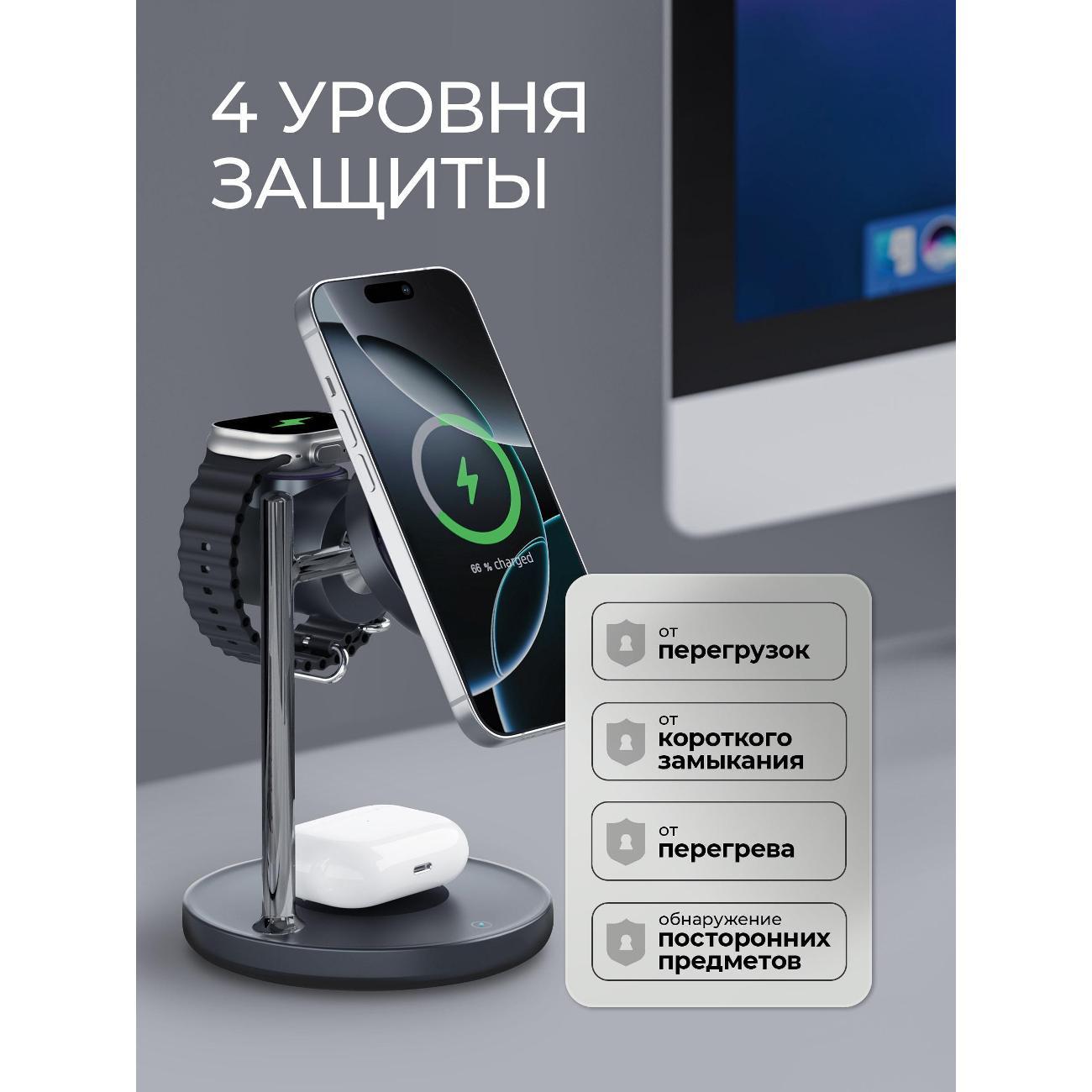 Не шатается, не нужно придерживать при установке / снятия телефона. Samsung S25 Ultra держит крепко. Блок нужно брать от 45 Вт. Телефон определяет быструю зарядку 2.0. Встроенный кулер справляется хорошо, телефон не перегревается, что в перспективе меньше будет влиять на деградацию аккумулятора. Есть сенсор отключения кулера. Часы Galaxy Watch заряжает, наушники Sony WF-1000XM4 заряжает. Рекомендую к покупке.