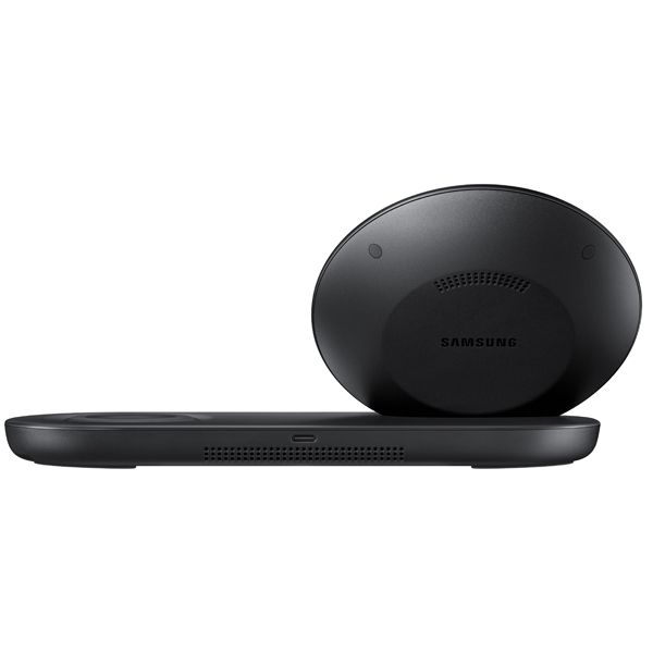 Беспроводное зарядное устройство Samsung с функцией быстрой зарядки EP-N6100 – это универсальный и компактный источник питания для вашего смартфона или часов. Благодаря особой конструкции вы сможете разместить на подставке сразу два совместимых девайса. Они устанавливаются под удобным углом, что позволяет, например, смотреть видео и общаться в мессенджере прямо во время подзарядки.