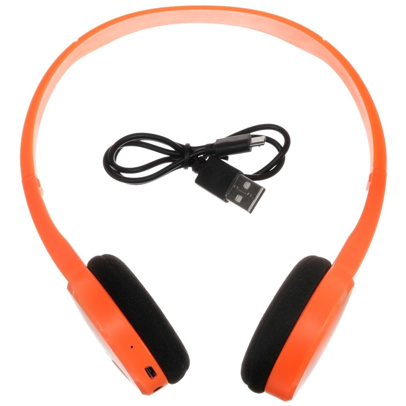 Устройство подключается к гаджетам через Bluetooth. Оно работает от аккумулятора и заряжается через USB-кабель. На корпусе есть элементы управления: регулировка громкости, индикатор включения и кнопка принятия вызова.