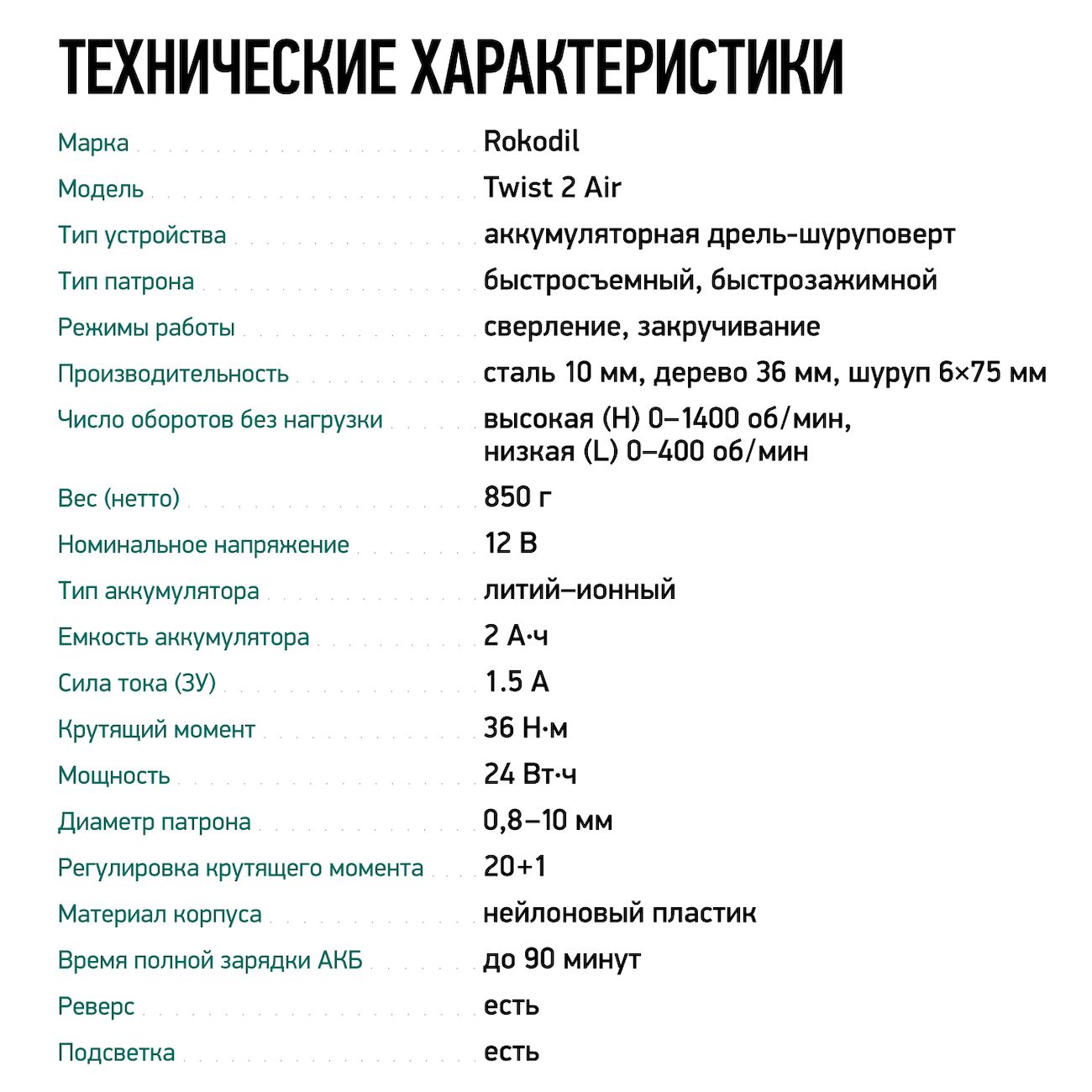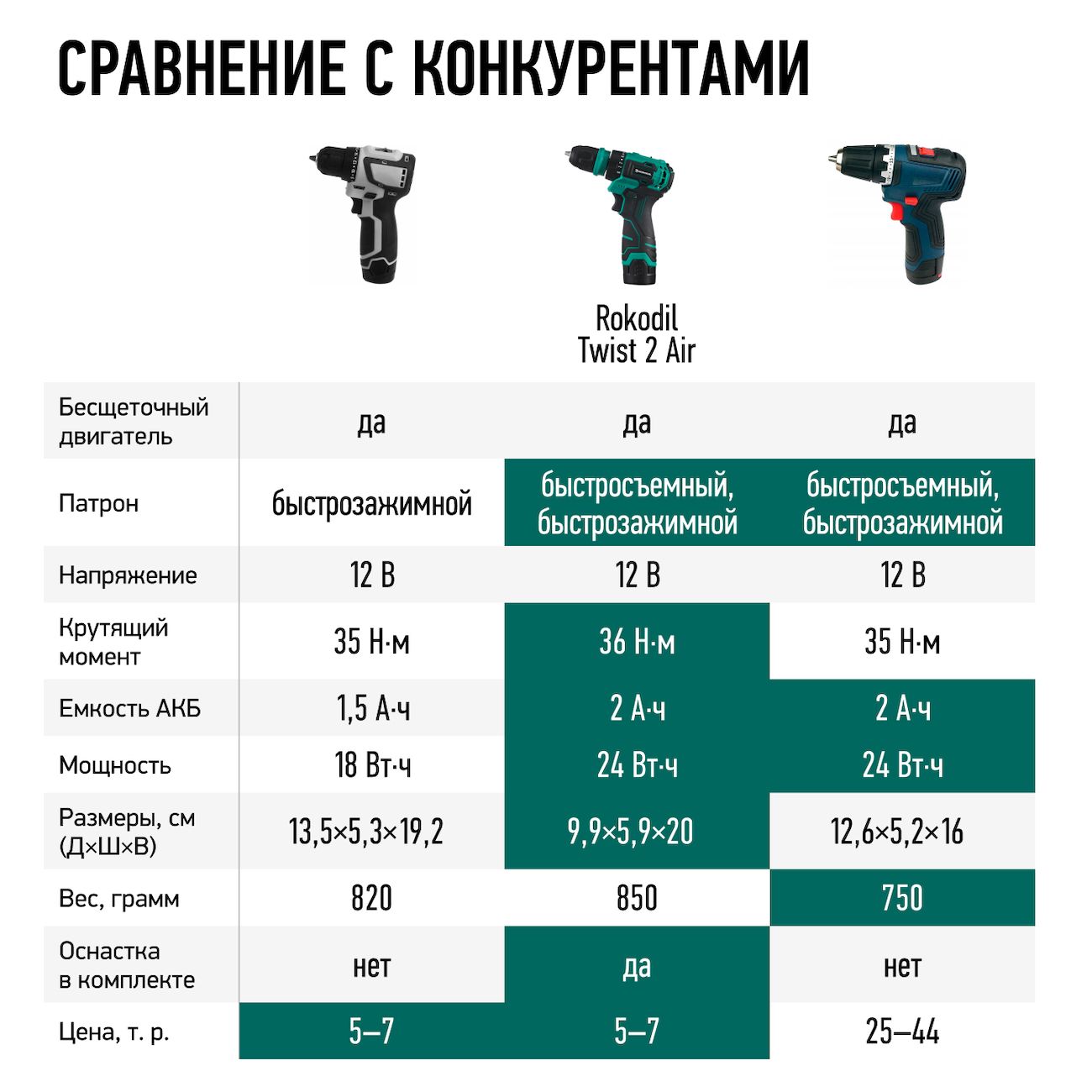Вы можете купить Бесщеточный аккумуляторный шуруповерт Rokodil Twist 2 Air Set1 (1 АКБ) в магазинах М.Видео по доступной цене. Бесщеточный аккумуляторный шуруповерт Rokodil Twist 2 Air Set1 (1 АКБ): подробное описание, фото и отзывы реальных покупателей, характеристики, возможность скачать инструкции и подобрать аксессуары.