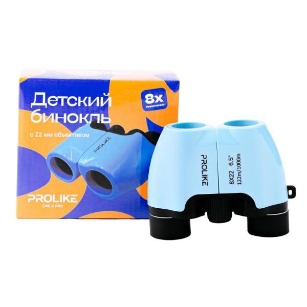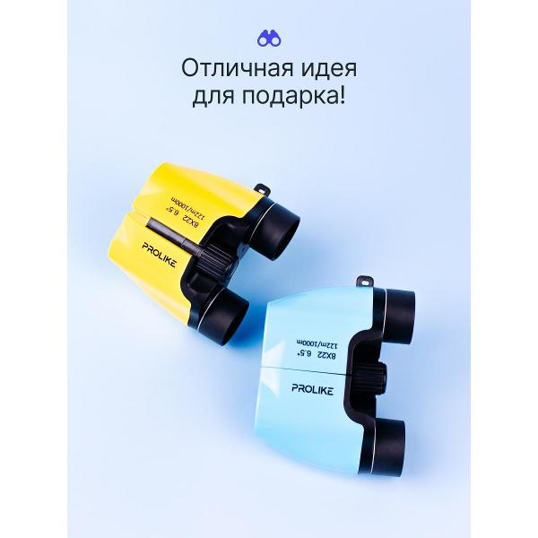 Детский бинокль Prolike 8x22 в корпусе черно-голубой расцветки оснащен мягкими силиконовыми наглазниками для максимально комфортной эксплуатации. Диаметр выходного зрачка и объективов бинокля составляет 22 мм. Кратность увеличения — 8х. Фокусировка механическая.