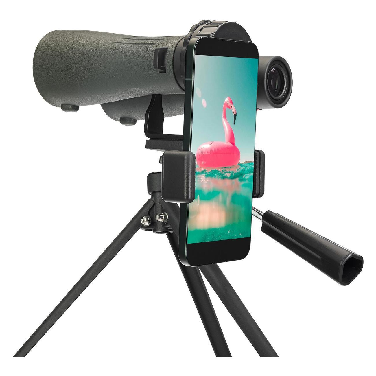 Штатив, адаптер, Bluetooth-пульт – в комплекте все, что нужно для старта. Просто закрепите смартфон на окуляре и начинайте снимать! Прибор совместим с Android и iPhone: универсальное крепление подходит ко всем моделям.