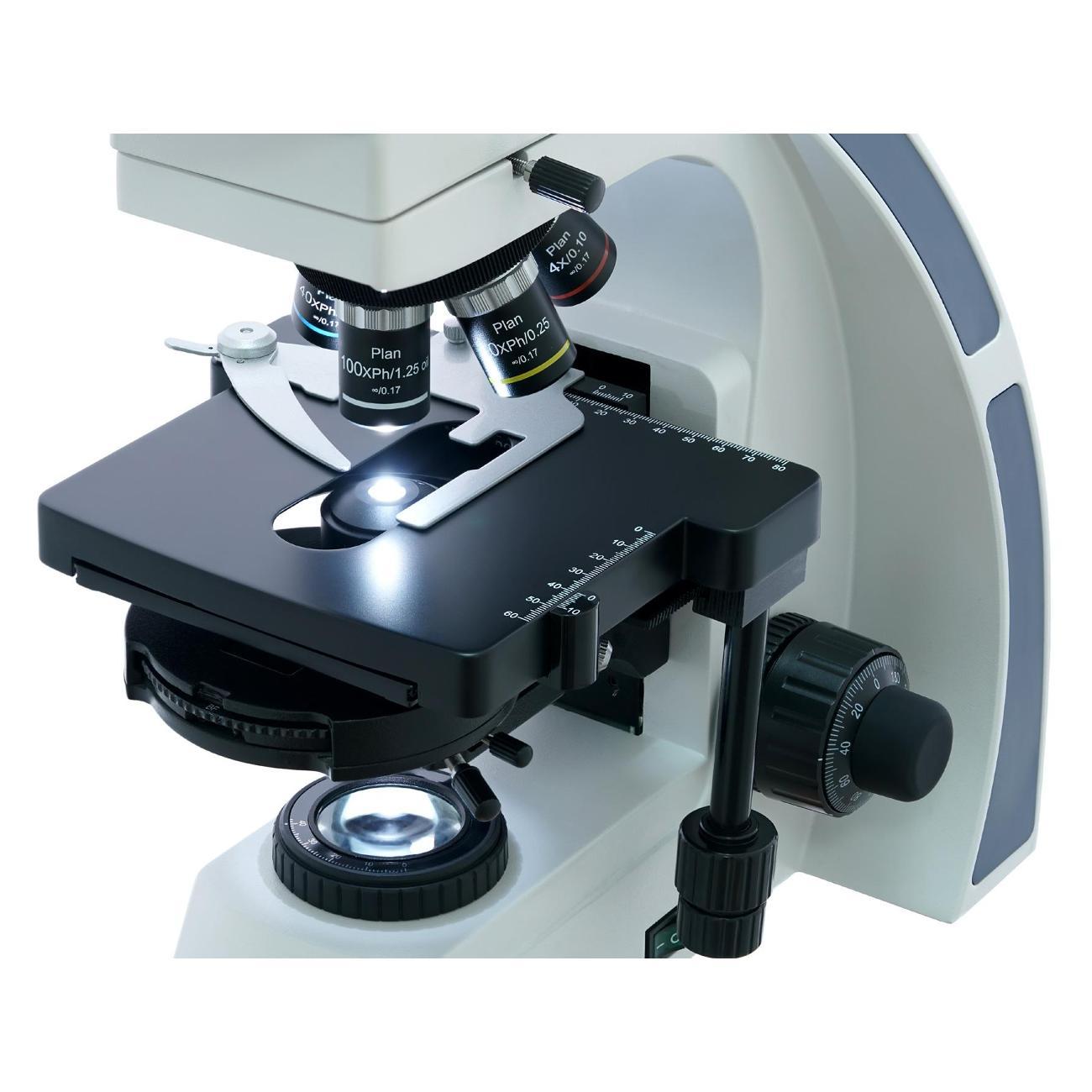 Отдельно остановимся на фазово-контрастной микроскопии, которую позволяет использовать этот микроскоп. Метод повышает контрастность и четкость полупрозрачных и прозрачных образцов до такого уровня, которого при классическом исследовании можно достичь только путем окрашивания. Поэтому фазово-контрастная микроскопия незаменима при исследовании живых образцов в естественном виде, так как любое окрашивание неизбежно приводит к их гибели. Метод можно применять для анализа питьевой воды, паразитологических, цитологических, гематологических и других видов исследований.
