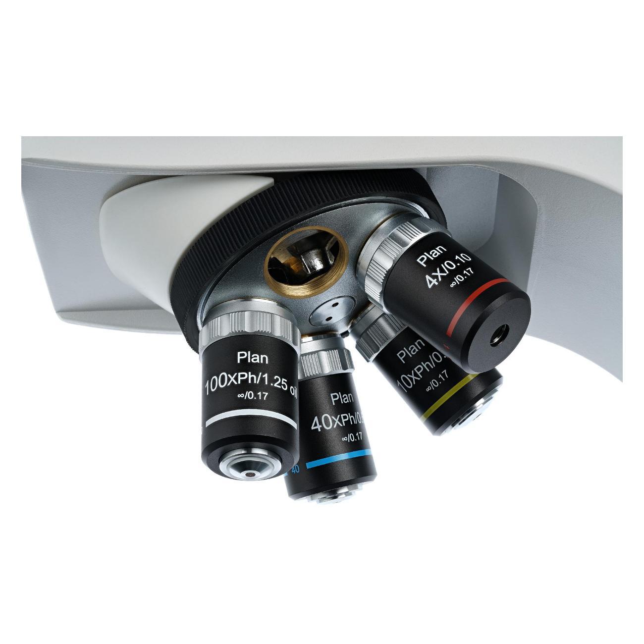 Объективы фазовые планахроматические, скорректированные на бесконечность: 4x, 10x, 40xs, 100xs (масляный) с антигрибковым покрытием