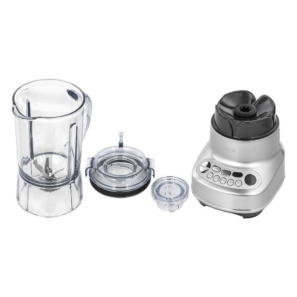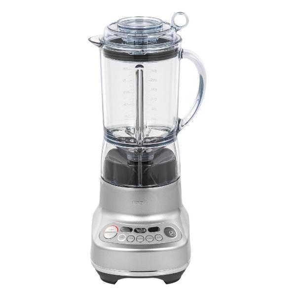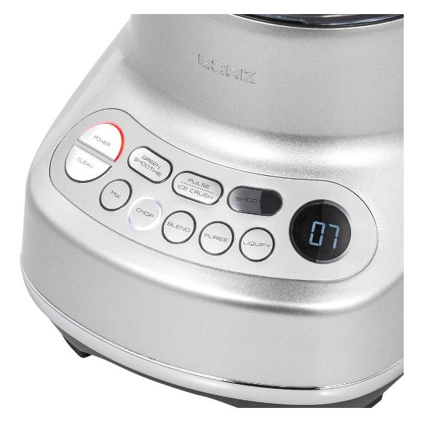 Панель управления оснащена дисплеем, на котором отображается обратный отсчет до конца программы. Чаша емкостью 1,5 л изготовлена из полимерного материала, который не выделяет вредных испарений, его разрешено мыть в посудомоечной машине. Модель оснащена защитой двигателя от перегрева. Блендер совместим с вакуумной насадкой марки: измельчать супы и смузи можно без контакта с кислородом, что значительно увеличивает срок хранения.