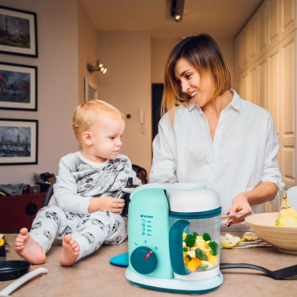 Эта модель сначала варит продукты на пару, затем измельчает и смешивает их. В результате получается нежное пюре, которое с удовольствием ест ребёнок. По окончании готовки она автоматически отключается, поэтому вы можете быть уверены, что пища не переварится.