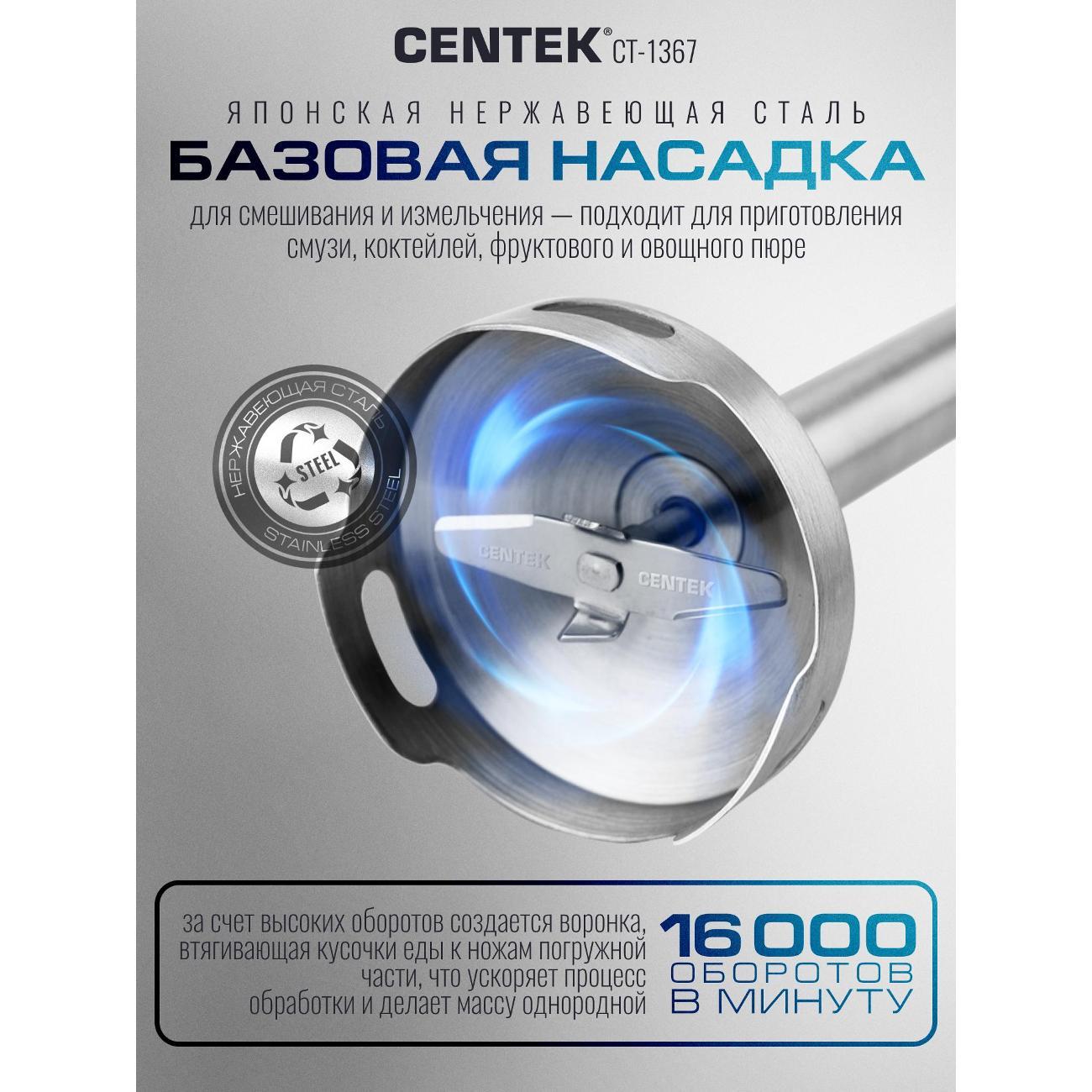 Вы можете купить Блендер погружной Centek CT-1367 в магазинах М.Видео по доступной цене. Блендер погружной Centek CT-1367: подробное описание, фото и отзывы реальных покупателей, характеристики, возможность скачать инструкции и подобрать аксессуары.