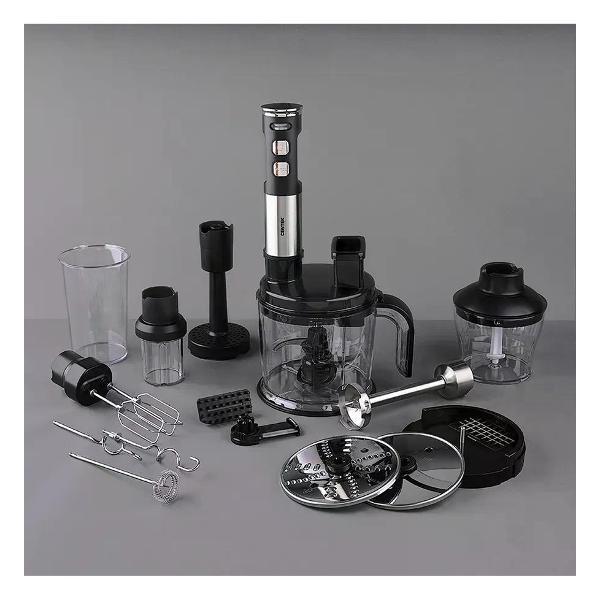 Многофункциональный погружной блендер CENTEK PRO CT-1368 – мощный и эффективный набор 9 в одном, для быстрого и качественного результата. Оснащен информационным дисплеем, который позволяет контролировать скорость и время работы. Широкая комплектация и быстрая смена насадок позволяют перерабатывать продукты практически мгновенно. Выполнен из качественных материалов при этом не уступает по функциональности кухонному комбайну! Данная модификация укомплектована измельчителем: терка, шинковка, нарезка кубиком 9*9. Легкое плавное управление и эргономичный дизайн, для максимально уверенного и комфортного использования Технические характеристики: Мощность - 1500 Вт. Гарантия - 1 год. Кол-во скоростей - 15. Материал корпуса - Нержавеющая сталь, Пластик. Особенности - Размеры кубиков при нарезке: 9×9, Специальная заточка лезвий, Электронный дисплей. Объем - 0. 08 л, 0. 65 л, 0. 8 л, 1. 5 л. Режимы - Турбо. Комплект аксессуаров - Мерный стакан (800 мл), Насадка для пюре, Насадка-венчик, Насадка-капучинатор, Насадка-кофемолка, Насадки для взбивания, Насадки для замешивания, Чаша измельчителя (1500 мл), Чоппер (650 мл). Тип конструкции - Погружной Когда ценишь свое время и любишь экспериментировать на кухне, наличие надежного блендера становится необходимостью. Благодаря кухонному блендеру вы сможете легко измельчать продукты и готовить различные блюда. Вы оцените удобство блендера в повседневном использовании. Популярность стационарного блендера объясняется его мощностью и долговечностью. Этот блендер объединяет эргономичный дизайн с высокой производительностью. Он не только измельчает и смешивает, но и сохраняет витамины в свежих продуктах благодаря бережной обработке. Эта техника пользуется спросом у покупателей.