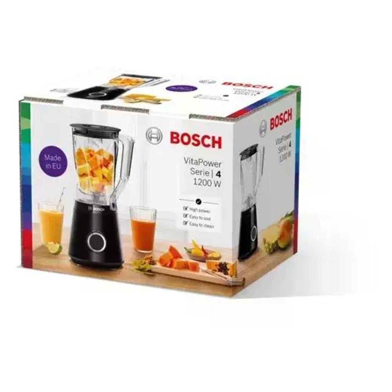 Стационарный блендер Bosch MMB6141B мощностью 1200 Вт способен работать на скорости до 30000 об/мин. Прибор измельчает продукты любой твердости, включая лед и орехи. Предусмотрены три автоматические программы и импульсный режим, механический переключатель расположен на передней части корпуса.