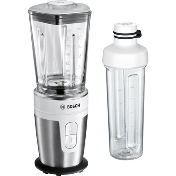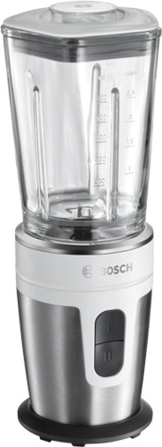 Bosch MMBM7G2M Mix&Go — стационарный блендер в корпусе из нержавеющей стали, который подходит для смешивания, измельчения продуктов, дробления льда, орехов. Он работает на двух скоростях, к сети подключается с помощью кабеля длиной 1 м. Потребляемая мощность прибора — 350 Вт.