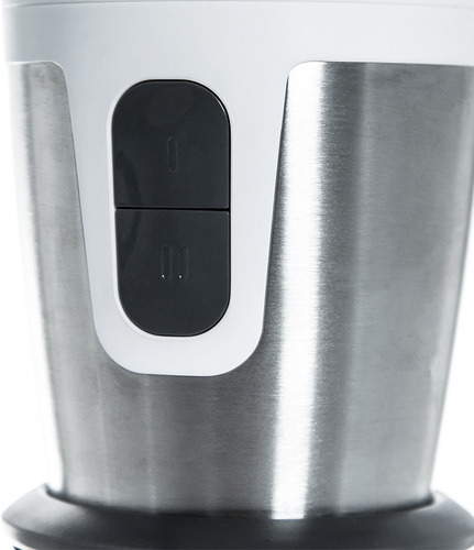 Эта модель оборудована стеклянной чашей объемом 600 мл и фитнес-стаканом с удобной крышкой для питья. Съемные приспособления можно очищать в посудомоечной машине. Ножи сделаны из стали, не подвержены воздействию ржавчины и деформации.