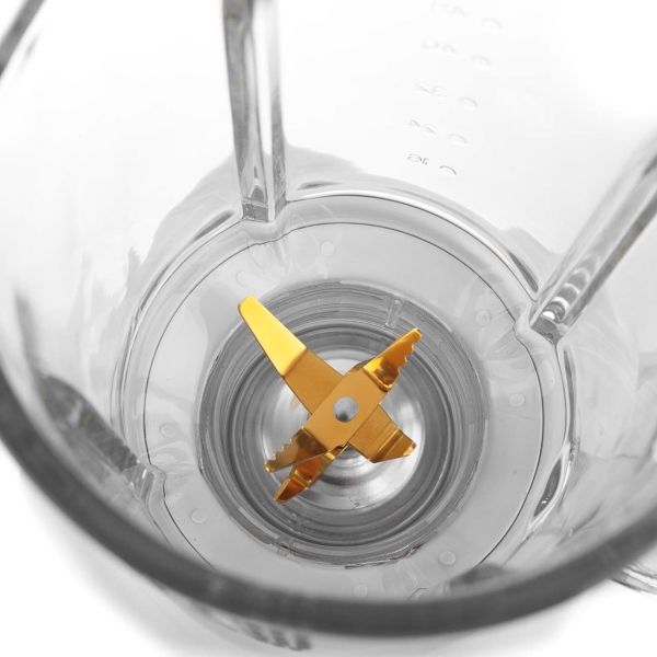 Устройство оснащено одной чашей для смешивания и измельчения объемом 1,8 литра и предназначено для приготовления коктейлей, смузи, соусов, супов-пюре, а также для дробления льда и измельчения орехов. Нож изготовлен из нержавеющей стали и приводится в движение при помощи механизма на корпусе. В комплекте к блендеру прилагается мерный стакан.
