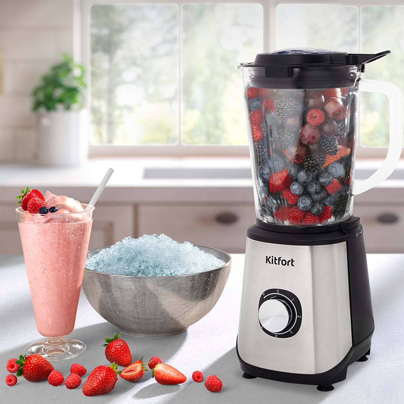 Измельчайте и смешивайте продукты с помощью стационарного блендера Kitfort КТ-3020. Благодаря мотору, мощность которого составляет 600 Вт, он справится со сложными задачами.