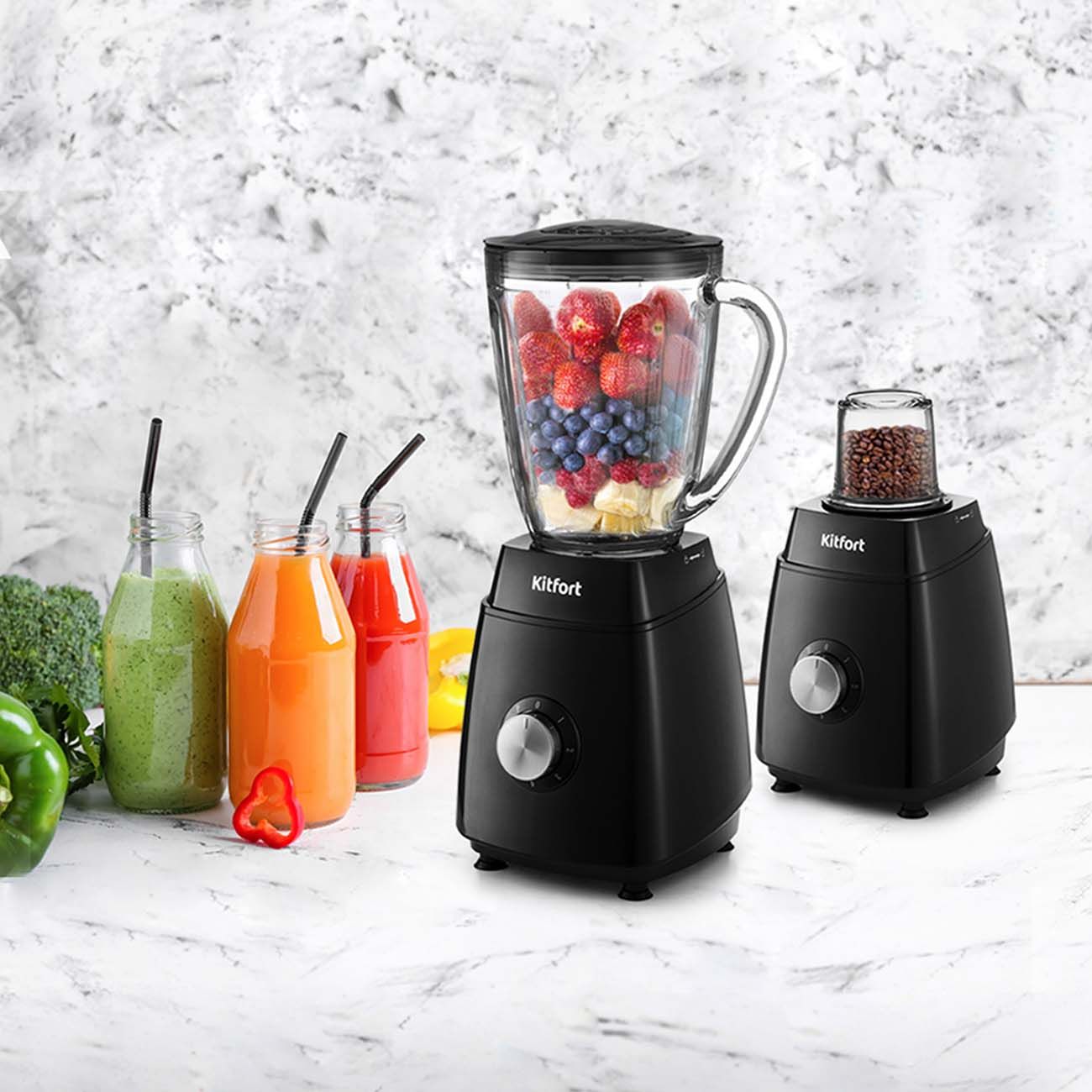 Измельчайте и смешивайте продукты с помощью стационарного блендера Kitfort КТ-3029. Благодаря мотору, мощность которого составляет 600 Вт, он справится со сложными задачами.