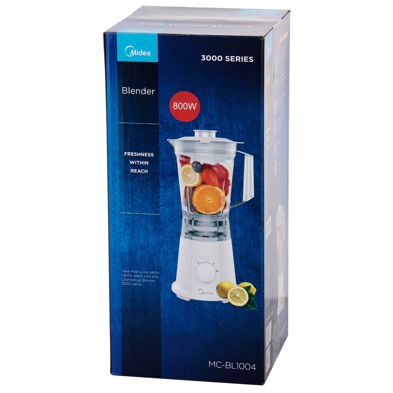 Стационарный блендер Midea MC-BL1004, оборудованный прочными стальными лезвиями, предназначен для измельчения продуктов, перемешивания ингредиентов и взбивания сливок и яичных белков. Специальная функция даёт возможность колоть лёд.