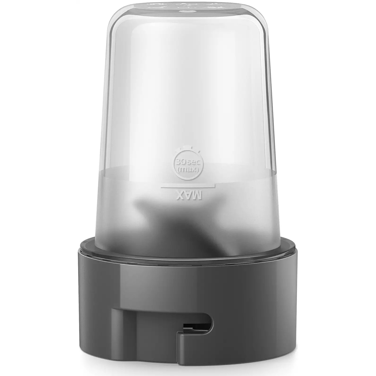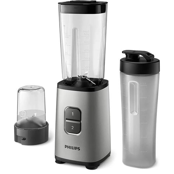 В комплект входят три насадки: кувшин, стакан-непроливайка для смузи On the Go, универсальный измельчитель. Кувшин объемом 0,6 л изготовлен из пластика. У модели отсоединяемый шнек. Возможна чистка съемных элементов в посудомоечной машине.