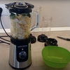 Очень нравится дизайн. Двигатель сделан из нержавеющей стали. Имеет 3 скорости (средняя, более мощная и импульсная). Есть функция перегрева, в случае чего он просто не включится пока не остынет. Снизу расположены присоски, с помощью которых его удобно фиксировать на столе. Самая большая в комплекте чаша 800 мл, сделана она из очень толстого термостойкого стекла с размёткой. На стакане имеется крышка с колпачком. В набор входят два дорожных стакана (По объему 300 и 600 мл) и кофемолка(измельчитель) объемом 70 мл. Блендер С лёгкостью справляется с замороженными ягодами и хорошо раскалывает лед. Блендер отлично справляется со своими функциями: уже успела опробовать коктейли, смузи и супы-пюре.