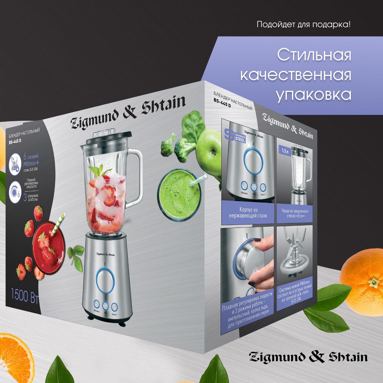 Вы можете купить Блендер стационарный Zigmund & Shtain BS-445 D в магазинах М.Видео по доступной цене. Блендер стационарный Zigmund & Shtain BS-445 D: подробное описание, фото и отзывы реальных покупателей, характеристики, возможность скачать инструкции и подобрать аксессуары.