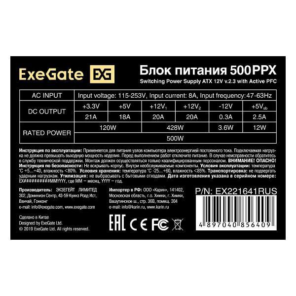 Вы можете купить Блок питания ExeGate 500W 500PPX (EX221641RUS) в магазинах М.Видео по доступной цене. Блок питания ExeGate 500W 500PPX (EX221641RUS): подробное описание, фото и отзывы реальных покупателей, характеристики, возможность скачать инструкции и подобрать аксессуары.