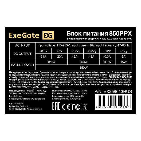 Вы можете купить Блок питания ExeGate 850PPX (EX259613RUS) 850W в магазинах М.Видео по доступной цене. Блок питания ExeGate 850PPX (EX259613RUS) 850W: подробное описание, фото и отзывы реальных покупателей, характеристики, возможность скачать инструкции и подобрать аксессуары.