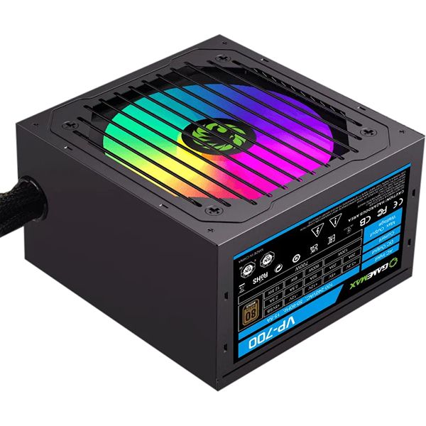 Блок питания Gamemax VP-700-RGB — источник питания для сборки домашнего или офисного ПК, отличающийся бесперебойной работой. Вес устройства при размерах 150х86х140 см составляет 1,9 кг. Особенность модели — наличие красивой подсветки и умной системы контроля температуры. Активная система охлаждения работает тихо. Предусмотрен 120-миллиметровый вентилятор. Форм-фактор БП — ATX.