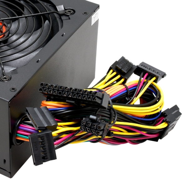 Черный блок питания для компьютера Ginzzu PB450 80+ (12 см) идет в комплекте с кабелем увеличенной длины (45 см). КПД — более 80%. Размер вентилятора — 12х12 см. Присутствует автоматический регулятор скорости вращения. Габариты модели — 20,5х10,5х25 см. Вес изделия — 1,1 кг. Мощность устройства составляет 0,45 кВт. Блок защищен от перегревания, сетевых перегрузок. Сертификат 80 Plus Bronze гарантирует коэффициент мощности до 0,9 при 50% нагрузке. Напряжение — 200–240 В.