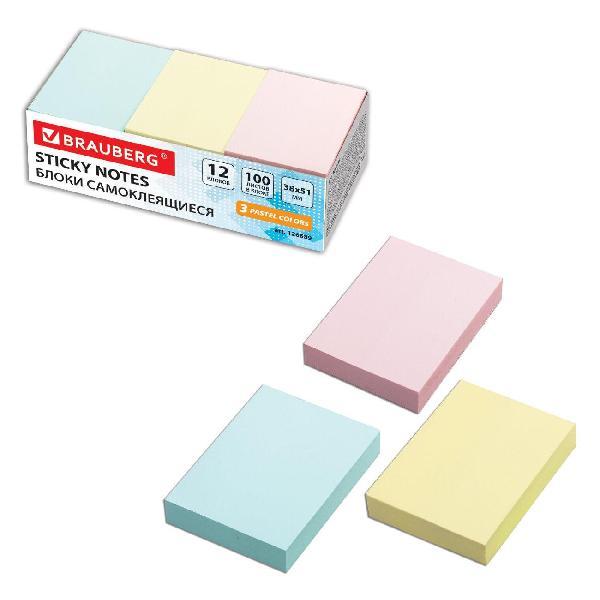Набор стикеров 3 пастельных цветов (желтый, розовый, голубой) в форме прямоугольника 38х51 мм состоит из 12 блоков по 100 листов каждый. Плотность бумаги составляет 75 г/м2. Клейкий слой - 35 Н/м. Легко клеятся к любой поверхности. Не оставляют следов. Упакованы в картонную коробку.