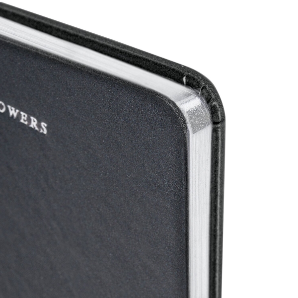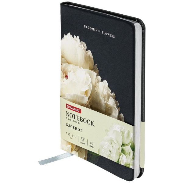 Внутренний блок включает 80 листов белой бумаги плотностью 70 г/м2. Благодаря стандартному формату А5 блокнот удобно использовать как в офисе, так и на выездных деловых встречах. Твердая (книжная) обложка с полноцветной печатью и тиснением серебряной фольгой делает блокнот неповторимым и запоминающимся. Срез блокнота фольгирован серебряной фольгой, что придает ему особый шарм. Дополнением является закладка-ляссе, с помощью которой можно быстро открыть блокнот на нужной странице.