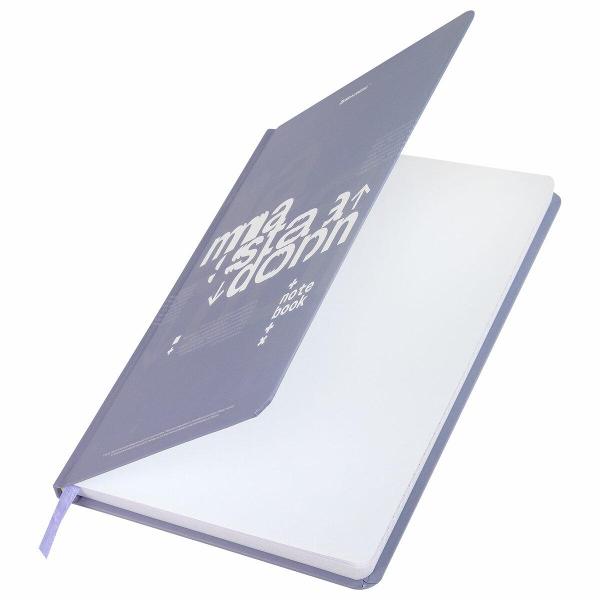 Внутренний блок изготовлен из белого офсета плотностью 60 г/м2 и прикреплён к обложке с помощью книжного переплёта. Формат блокнота А5 (145х203 мм) позволяет удобно разместить его в портфеле или небольшой сумке.