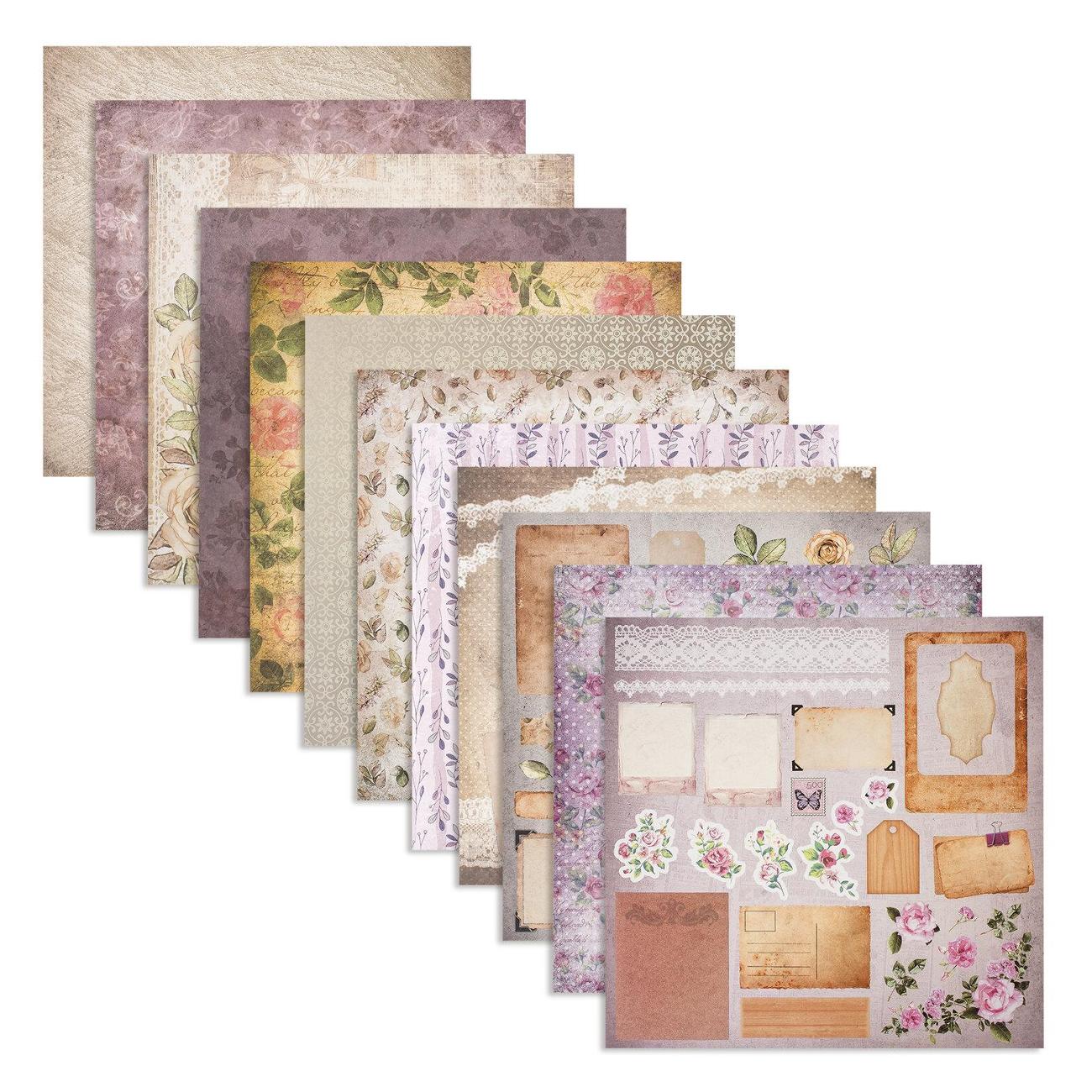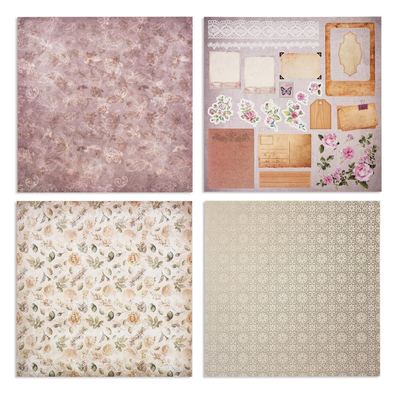 Стиль "Винтаж" содержит романтичные дизайны в бежево-розовых тонах с имитацией ретро-принтов и прекрасно подойдёт для создания фотоальбомов, блокнотов для записей и других изделий.