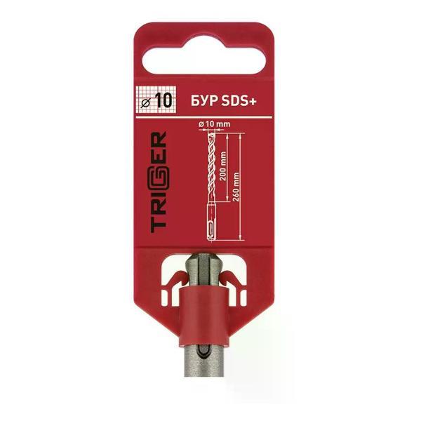 Бур по бетону SDS+10х200/260 мм. Применяется для бурения отверстий в бетоне, железобетоне, кирпиче, керамике и камне. Специальная спираль быстро выводит шлам из отверстия, увеличивает скорость работы. Точность изготовления спирали и твердосплавного элемента исключает биение бура при работе и вибрацию инструмента. Хвостовик SDS+ из стали 40Х. Центрированный наконечник из твердого сплава ВК9 (карбид вольфрама, кобальт – 9%) Тип товара : Бур; Длина, мм : 260; Длина рабочая, мм : 200; Тип патрона : SDS+; Диаметр, мм : 10