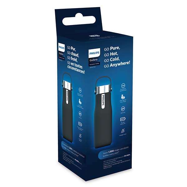 Бутылка-термос с УФ-стерилизатором Philips AWP2787BK обладает объемом 0,35 л. Корпус выполнен из нержавеющей стали. Благодаря технологии UV-C LED содержимое остается свободным от посторонних запахов, которые появляются в результате образования бактерий.