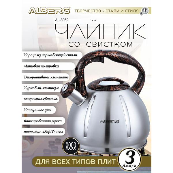 Вы можете купить Чайник ALBERG AL-3062 в магазинах М.Видео по доступной цене. Чайник ALBERG AL-3062: подробное описание, фото и отзывы реальных покупателей, характеристики, возможность скачать инструкции и подобрать аксессуары.