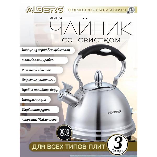 Вы можете купить Чайник ALBERG AL-3064 в магазинах М.Видео по доступной цене. Чайник ALBERG AL-3064: подробное описание, фото и отзывы реальных покупателей, характеристики, возможность скачать инструкции и подобрать аксессуары.