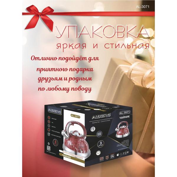 Вы можете купить Чайник ALBERG AL-3071 в магазинах М.Видео по доступной цене. Чайник ALBERG AL-3071: подробное описание, фото и отзывы реальных покупателей, характеристики, возможность скачать инструкции и подобрать аксессуары.