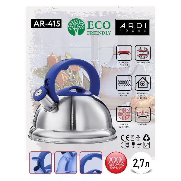 Вы можете купить Чайник ARDI Kuche AR-415 со свистком, 2.7 л Grey в магазинах М.Видео по доступной цене. Чайник ARDI Kuche AR-415 со свистком, 2.7 л Grey: подробное описание, фото и отзывы реальных покупателей, характеристики, возможность скачать инструкции и подобрать аксессуары.