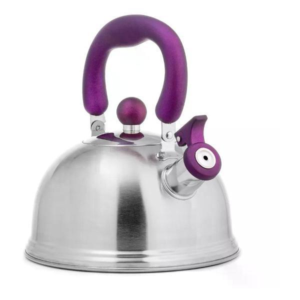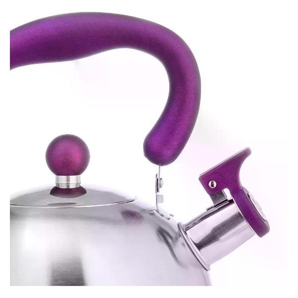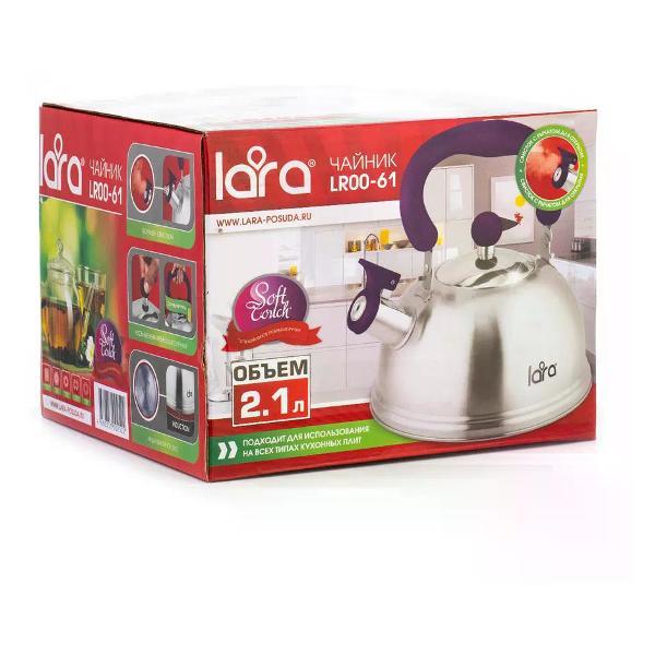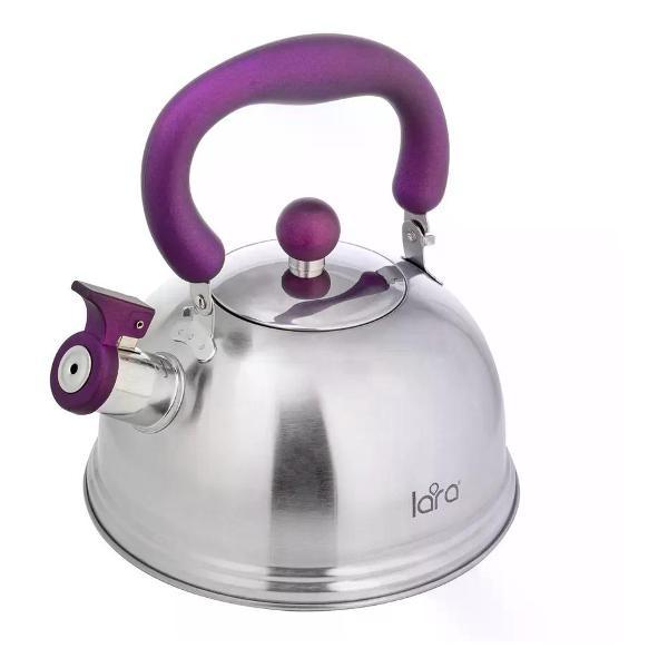 Компактный чайник классической формы LARA со свистком. Матовая полировка корпуса в тандеме с пурпурной отделкой ручек станет ярким акцентом в интерьере вашей кухни. Установленный свисток не позволит пропустить момент закипания воды, и вы вовремя снимите чайник с плиты. Чайник выполнен из качественной нержавеющей стали. Складная нейлоновая ручка имеет приятное на ощупь покрытие Soft-touch. Стильная ненагревающаяся крышка с пластиковой ручкой дополняет внешний вид. Свисток на носике открывается с помощью рычага. Индукционное дно подходит для всех типов плит Технические характеристики: Объем - 2, 1 л. Материал - Нержавеющая сталь 430. Полировка - Матовая. Складная ручка - Да. Дно - Индукционное. Материал ручки - Soft-touch, Нейлон. Мытье - Ручная мойка Ищете проверенное решение для приготовления горячих напитков? Чайник для плиты - это классика, которая никогда не подводит. По соотношению цена-качество чайник со свистком для газовой плиты Lara выгодно отличается от аналогов. Популярность чайника для плиты объясняется его практичностью и долговечностью. Чайник прекрасно справляется с быстрым кипячением воды. С чайником для плиты Lara приготовление горячих напитков становится простым и привычным. Качественные материалы и продуманная конструкция гарантируют долговечность использования. Эргономичный дизайн делает использование простым и комфортным.