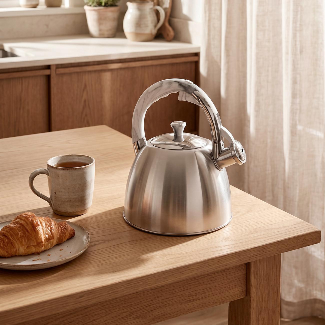 Чайник понравился, литраж хороший, тот что искала, быстро закипает, звук свистка не раздражает. Удобно наливать воду через горлышко. Покупали для газовой плиты на дачу.