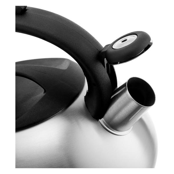 Чайник Vensal VS3007 Savour, серебристый совместим с газовыми, чугунными стеклокерамическими и индукционными конфорками. На носик есть свисток. Он оповестит о том, что вода кипит. Чайник вмещает 3 л воды. Его корпус выполнен из нержавеющей стали. Крышка изготовлена из ABS-пластика. Ручка произведена из бакелита и не греется. Чайник можно мыть в посудомойке. Диаметр его дна составляет 21 см, а вес — 800 г.