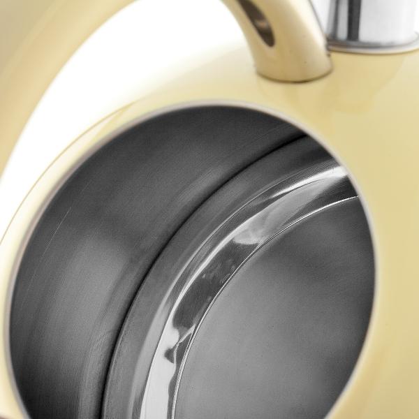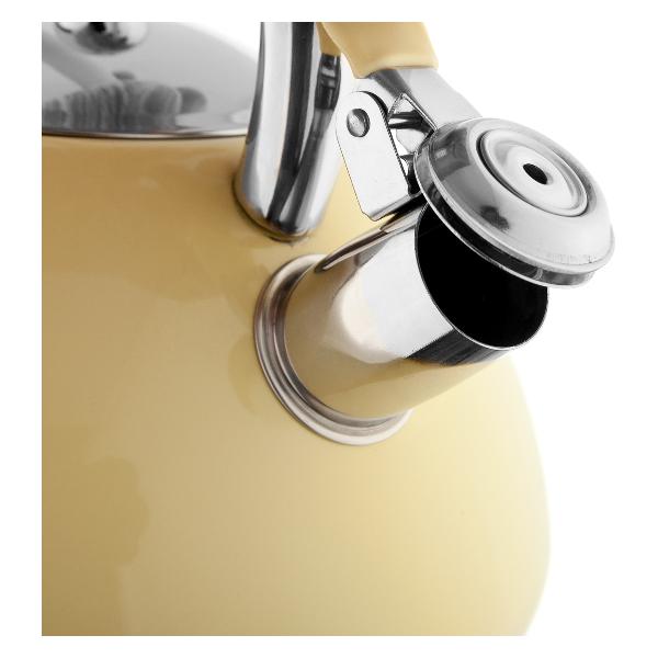 Чайник Vensal VS3005 Vanille, бежевый оснащен термоизолированной прорезиненной ручкой, которая не нагревается в процессе закипания воды. Объем чайника — 3 л. Он совместим с плитами любого типа. Корпус и крышка модели сделаны из нержавеющей стали. Чайник весит 1 кг. Диаметр его дна составляет 20 см.