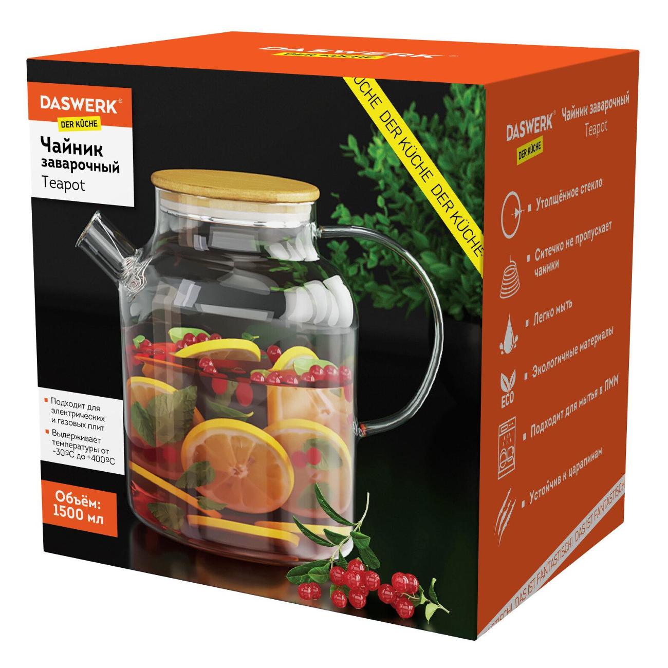 Вы можете купить Чайник заварочный DASWERK 608645 в магазинах М.Видео по доступной цене. Чайник заварочный DASWERK 608645: подробное описание, фото и отзывы реальных покупателей, характеристики, возможность скачать инструкции и подобрать аксессуары.