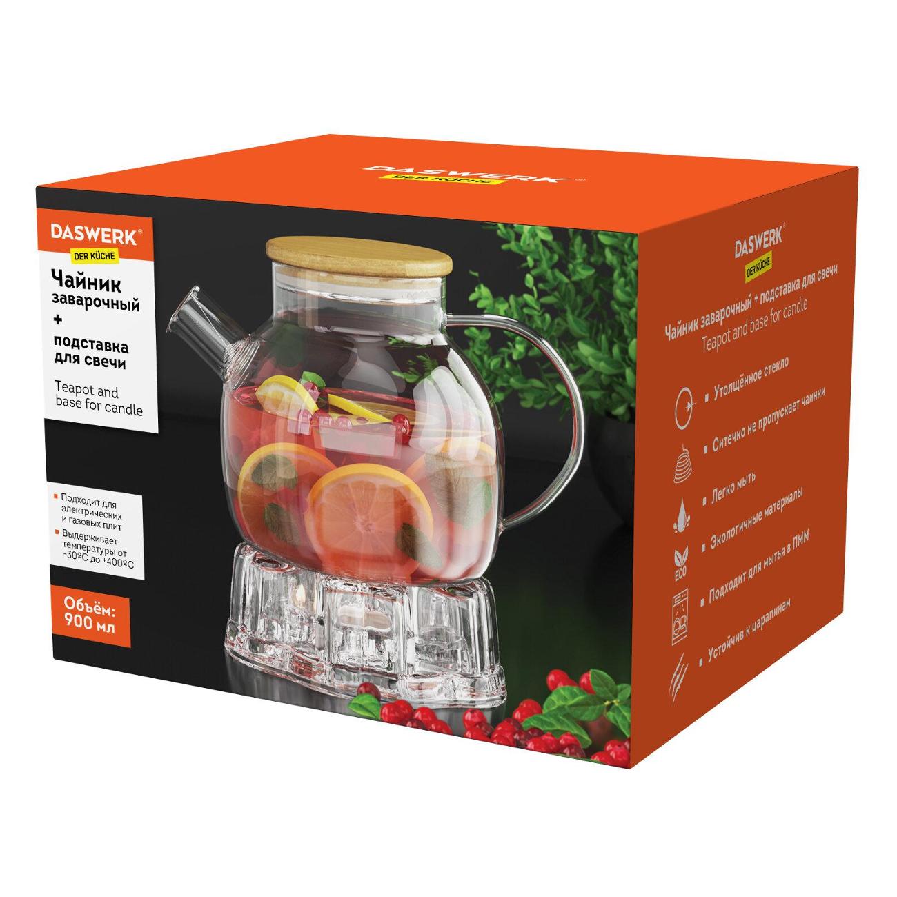 Чайник идёт с крышкой из бамбука, подставкой, и сеточкой для горлышка 1 шт. Была запасная! Набор выполнен из стекла. Подогревал чайник на газовой плите, на медленном огне и не до раскалывание стекла, всё хорошо! По мне это отличный набор! Также можно подогревать чай вставляя маленькую круглую, свечу в саму подставку, очень удобно! Получил набор в магазине в коробке, и спрятанный в пупырчатый двойной пакет! Всё было целое! Спасибо продавцу за качественный товар, и магазину: М.Видео!
