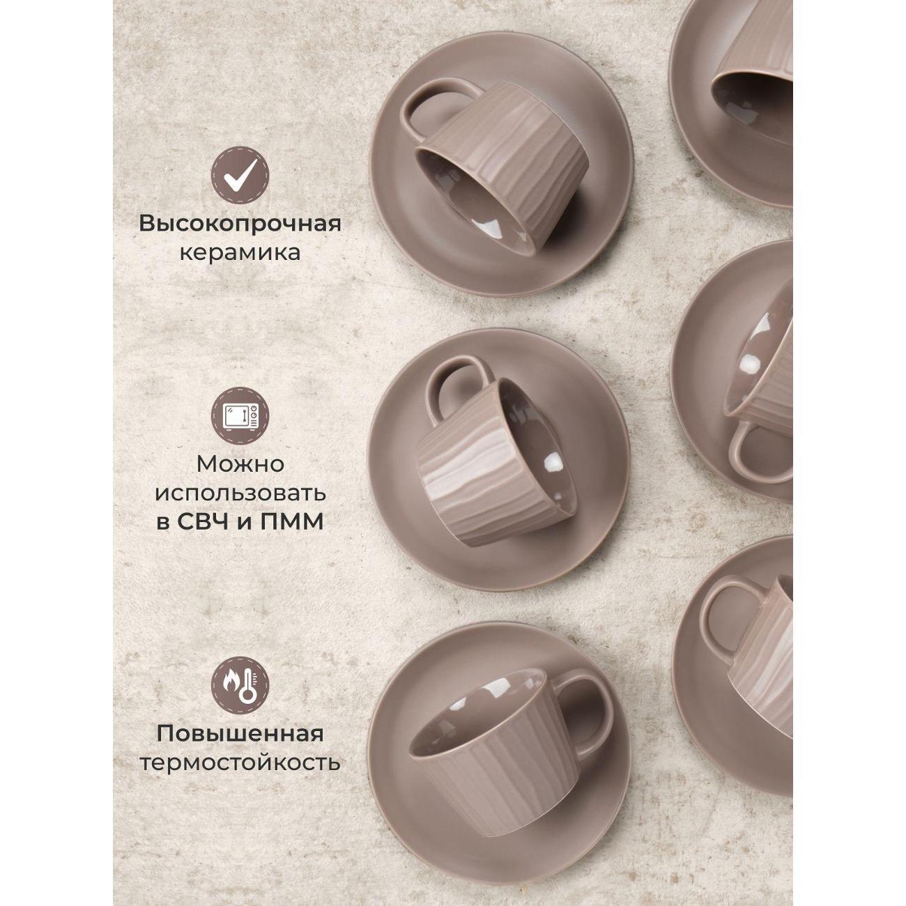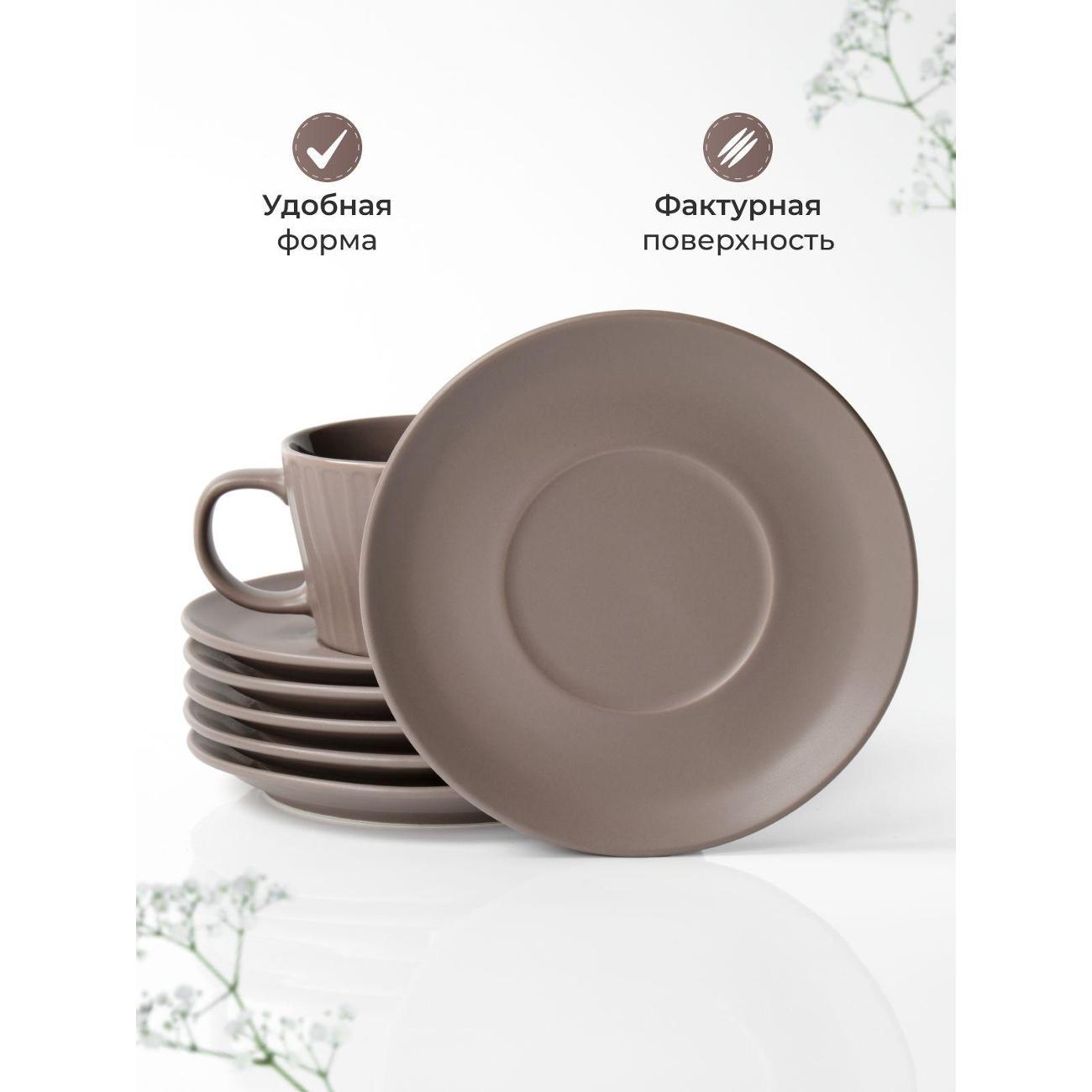Набор из шести керамических чашек и блюдец – отличный выбор для чаепития в уютной обстановке. Чайная пара выполнена в интересном фактурном дизайне и удобной форме