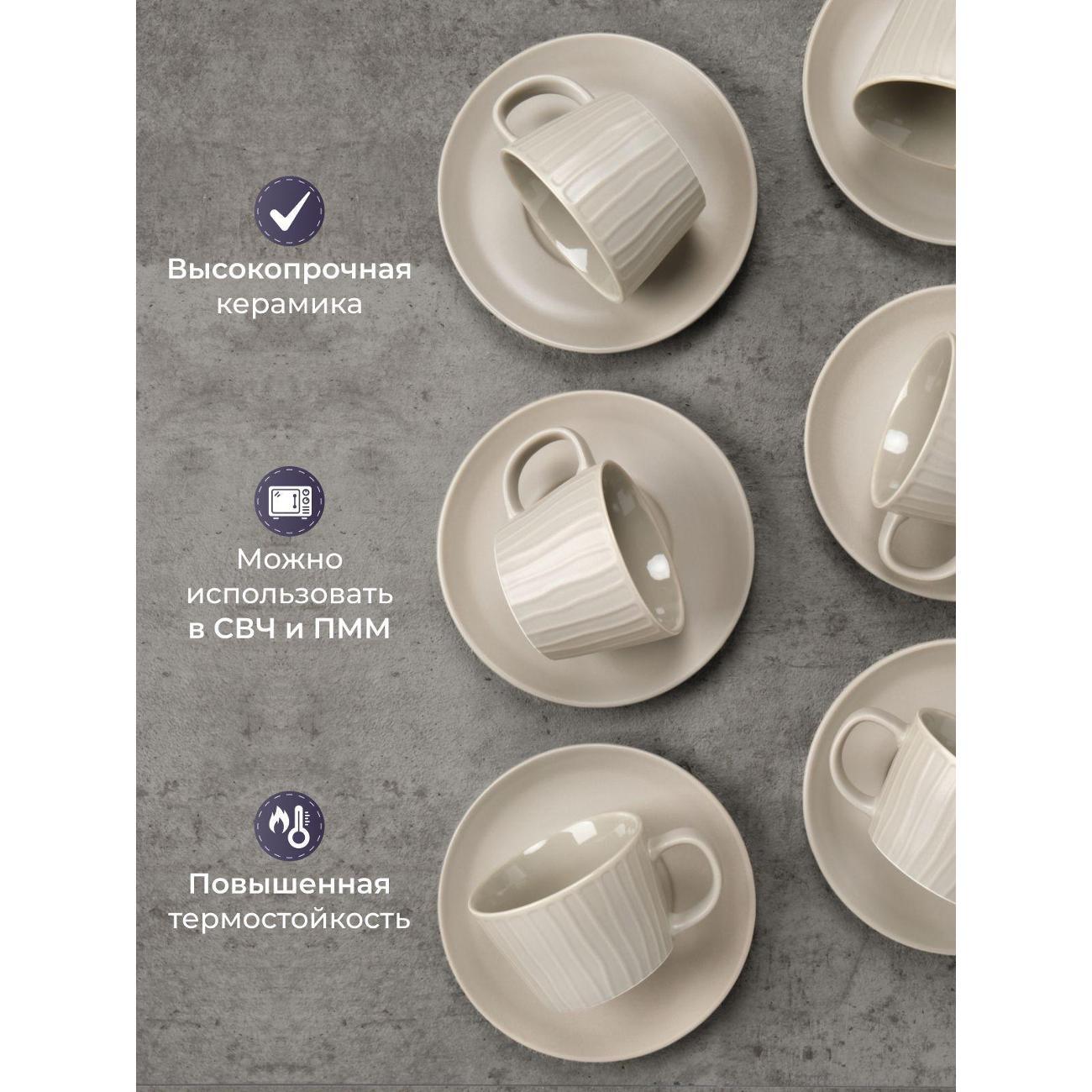 Набор из шести керамических чашек и блюдец – отличный выбор для чаепития в уютной обстановке. Чайная пара выполнена в интересном фактурном дизайне и удобной форме